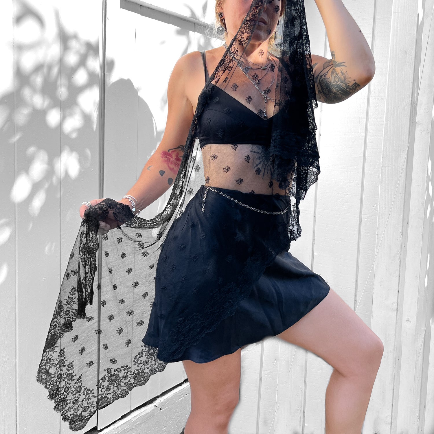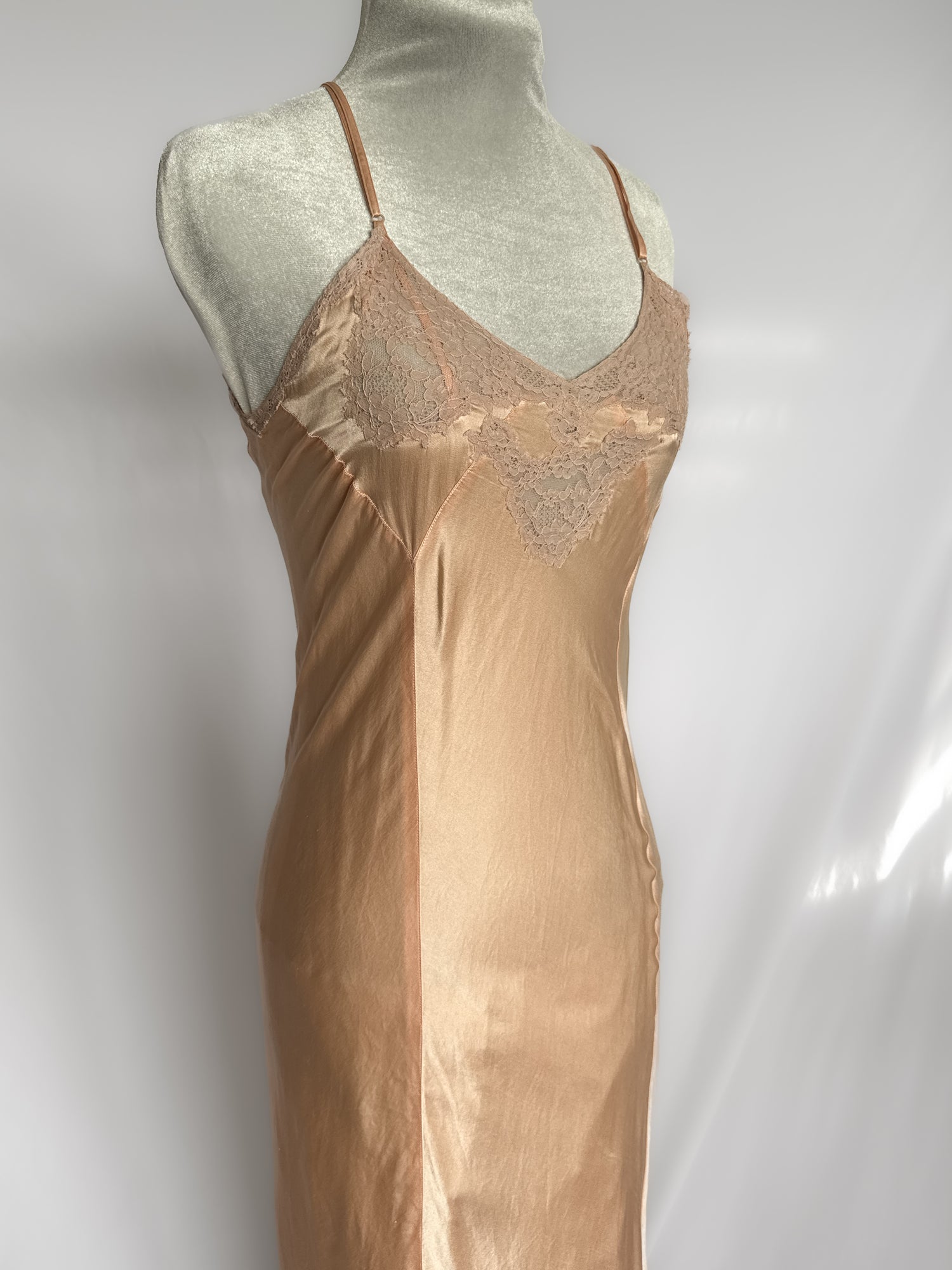 1940s vintage satin & lace maxi slip dress in icey lavender purple